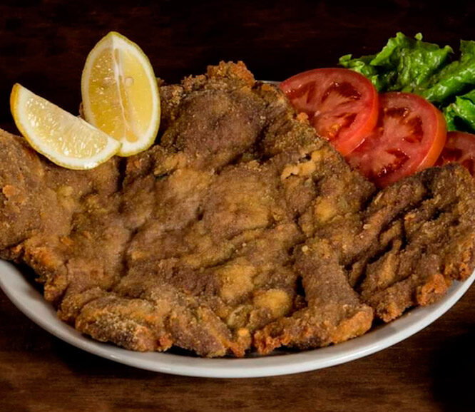 | MILANESA NAPOLITANA: Milanesa de lomo, Rodajas de tomate, Queso gratinado y orégano. |