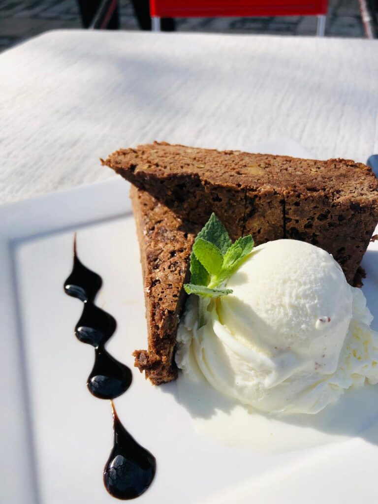 | Sundae Brownie (2 bochas de helado, brownies, crema chantilly y salsa) |